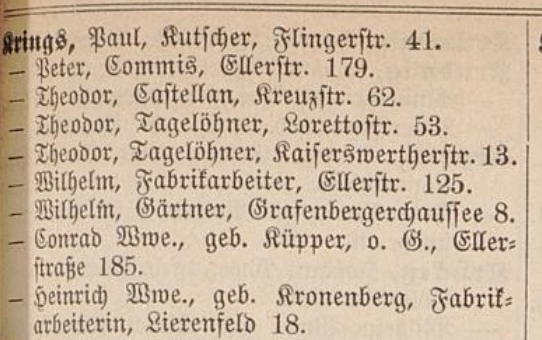 My 2x Great Grandfather was a shoemaker and his wife, my 2x Great Grandmother had her own grocery shop. They were both in the 1855 Düsseldorf directory.